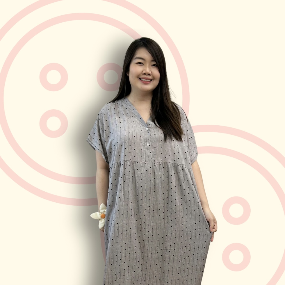 Full-length with nursing-friendly buttons. Designed for mothers who seek gentle support, breathable softness, and effortless elegance.
